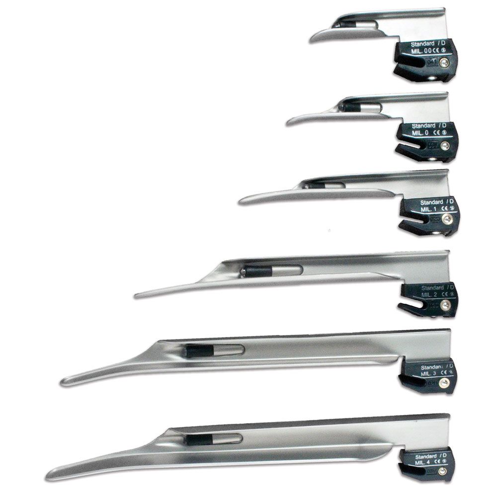 Miller Type Straight Laryngoscope Blades - Satin/Dull Finish